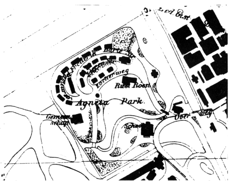 Het complex van in kleine groepjes als een geheel bijeen gelegen arbeiderswoningen, ieder voorzien van een eigen tuin, werd gesticht door J.C. van Marken, directeur van de naastgelegen Gist- en Spiritusfabriek te Delft. Zijn bedoeling was om de arbeiders van zijn fabriek goed en doelmatig te huisvesten. Dit initiatief bezat naast idealistische (verheffing van de arbeiders stand) ook economische motieven (een goed gehuisveste werknemer levert een dito productie) en kan als het eerste in Nederland worden benoemd; het Agnetapark werd in 1882 gesticht. Het complex bestaat behalve uit zes woningtypen, ook uit twee winkels, een onderwijscentrum, terwijl het ontspanningsgebouw en de villa van Van Marken inmiddels zijn gesloopt. De uitvoerende architecten waren E. Gugel en zijn assistent F.M.L. Kerkhoff, die in grote mate verantwoordelijk was voor de uitvoering. De parkachtige aanleg met waterpartijen en slingerend stratenpatroon werd door L.P. Zocher ontworpen. De oorspronkelijke situering van het Agnetapark, net buiten de oude stad, is grotendeels nog intact gebleven. In 1913 ontwierp Evers nog het recreatiegebouw 'De Tent' dat bedoeld was voor feesten, concerten, theateruitvoeringen en activiteiten als biljarten en kegelen. In de jaren 1925-1927 vond een uitbreiding plaats naar ontwerp van Gratama. De bijzondere cultuurhistorische waarde van het Agnetapark is gelegen in de vroege stichtingsdatum (de eerste zogeheten company in ons land), in de uitdrukking van een uitzonderlijke vertaling in de negentiende eeuw van de bouw van een woonwijk - in dit geval voor eigen arbeiders met hun gezinnen - en de daarmee samengaande bijzondere stedenbouwkundige kwaliteit van de aanleg en door de betrekkelijke gaafheid waarin het geheel bewaard is gebleven, in die zin dat het Agnetapark nog steeds wordt bewoond, terwijl de situering aan de stadsgrens in de loop van een eeuw niet ingrijpend is veranderd. Opmerkelijk genoeg weerhielden de besloten situatie van het terrein en de permanente aanwezigheid van de directeur in deze 'idylle der nijverheid' veel arbeiders ervan de gistfabriek als hun huisvesting in het Agnetapark te kiezen. Ondanks de goede woningen en het fraaie park stonden dikwijls woningen leeg en werden ze veel bewoond door arbeiders van andere bedrijven. De woningen zijn in 1988 gerenoveerd.