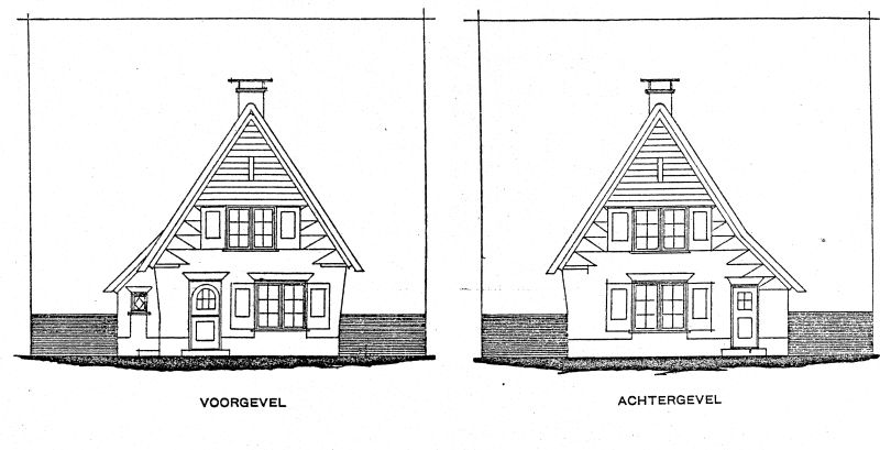 Met Rijkssteun werd dit plan verwezenlijkt. De bouwkosten bedroegen 10.000 gulden. De buitenmuren werden met grijze klinkers gemetseld. Het bovenste gedeelte van de topgevels werd gemaakt van gepotdekseld hout. Het dak werd met riet bedekt.Alle kamers werden behangen en de overige ruimtes fijn geschuurd. Overal werden balken zolderingen toegepast.Bij de uitvoering werden de twee slaapkamers aan de voorzijde tot ??n gemaakt, met atimmering van de kapschuinten tot kasten.