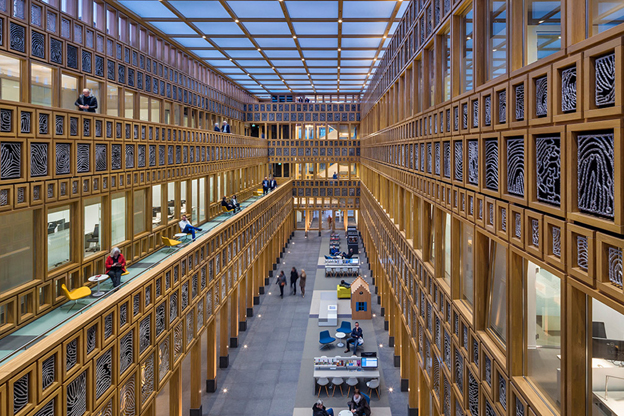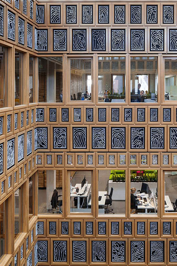 Het Stadhuiskwartier van Deventer is een complex geworden dat zowel architectonisch als stedenbouwkundig voorbeeldig is. Er is nu één krachtig en overzichtelijk ensemble gekomen dat zich volmaakt voegt in de oude binnenstad van Deventer met zijn fijnmazige structuur van tuinen, pleintjes, stegen en poorten. Aan weerszijden van de nieuwbouw van het Stadhuiskwartier liggen nu binnentuinen. Met het Stadskwartier hebben Neutelings Riedijk hun klassiekste gebouw tot nu toe afgeleverd. Niet alleen is het een hofgebouw rondom een binnenplaats, maar ook de gevels verwijzen naar classicistische architectuur. Zo past die van het poortgebouw aan het Grote Kerkhof met zijn klassieke driedeling in basement (galerij), middendeel (vakwerk) en kroonlijst (zinken dak) goed tussen de historische gebouwen aan weerszijden. De plafonds op de begane grond zijn veelal betonnen cassetteplafonds waarin de installaties en leidingen zijn ondergebracht in mooie, houten panelen. De ramen in de bakstenen delen hebben robuuste, uitspringende lijsten gekregen. Hoewel het Stadskwartier door en door klassiek is, is het nergens gemakzuchtig historiserend. Dat komt mede door de ornamentiek. Net als in hun eerdere gebouwen hebben Neutelings en Riedijk een kunstenaar gevraagd voor de versieringen van de gevels, waarvan de verhoudingen van het vakwerk overigens zijn gebaseerd op de Fibonacci-reeks. De meeste grote en kleine vakken van de houten gevels zijn, naar een ontwerp van Loes ten Anscher, ingevuld met aluminium panelen van uitvergrote vingerafdrukken van 2.264 inwoners van Deventer.