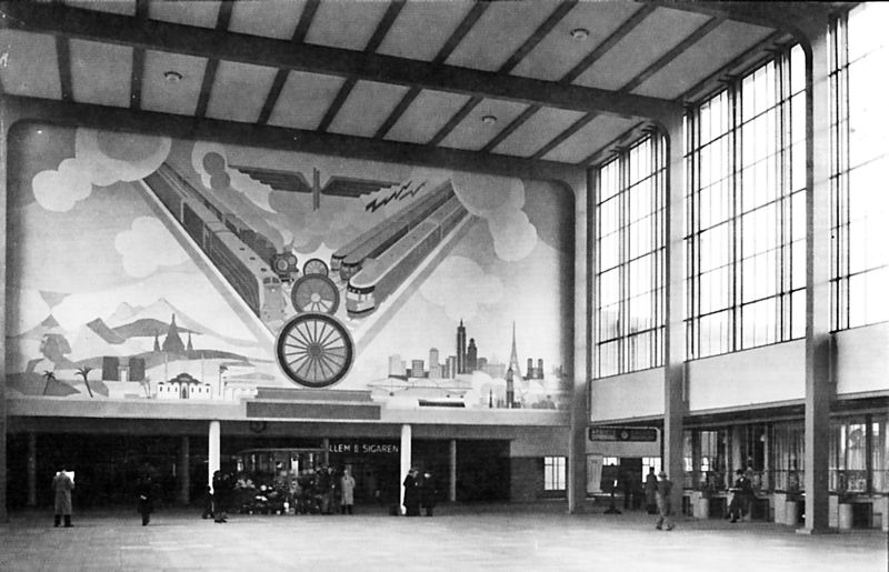 Het station is het eerste ge?ntegreerde knooppunt van openbaar vervoer. Het station heeft drie pleindelen op verschillende niveaus ten behoeve van alle aansluitende vervoer. De entreehal is loodrecht op de sporen geprojecteerd. Hierdoor wordt het plein opgesplitst in twee delen, het busstation bevindt zich aan de ene zijde, de andere zijde biedt voorrijdgelegenheid voor auto,s en taxi's. De hal heeft hoge glaswanden tussen stalen spanten aan de lange zijden. De korte zijden bestaan uit speklagen van baksteen en natuursteen. De hal heeft een flauwhellend zadeldak. De perrons hebben een platte overkapping bestaande uit een staalconstructie. In de hal bevinden zich wandschilderingen van P. Alma. Het zijn monumentale schilderingen die de wereldomvattende betekenis van de spoorwegtechniek ?n de technische vooruitgang daarvan uitbeelden. De bronzen vrouwenfiguur tegen het exterieur en de kalkstenen vrouwenfiguur in de hal werden vervaardigd door Th. van Reyn.