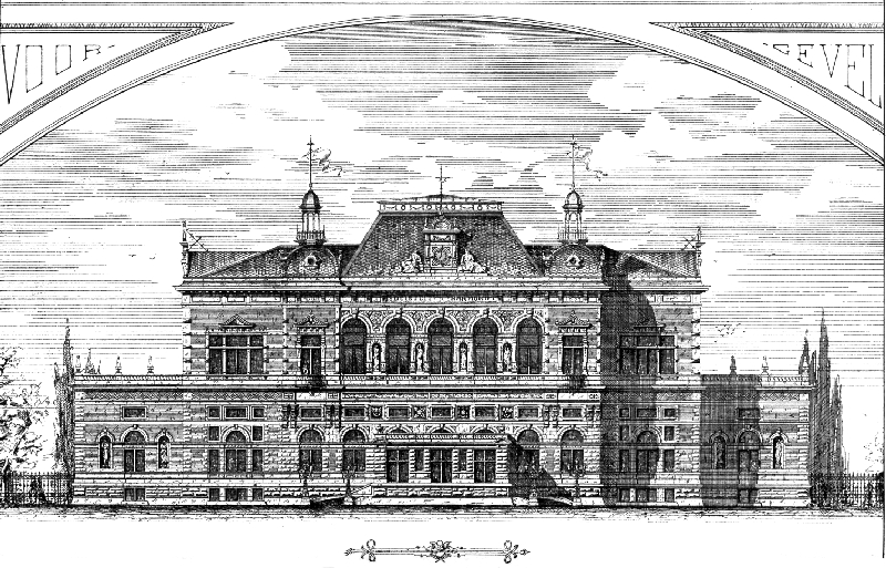 Het programma vereiste onder meer dat het gebouw moest bestaan uit een souterrain, ??n grote en tal van kleinere zalen en een overdekte doorrit aan de ingang. Het gebouw moest tevens groot genoeg zijn voor een stad van ongeveer 25.000 inwoners en in een grote tuin gesitueerd zijn. De architecten kozen hier wederom voor een neorenaissancestijl. Voor het uitwendige wilden ze baksteen met ruime toepassing van escauzijnse steen en zandsteen gebruiken.