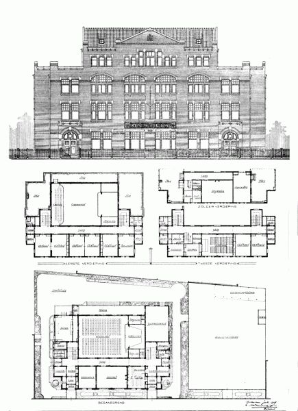 | Architecten: | Verheul Dzn., J., 1907; onbekend, 1991, verbouwing-; Bakema, J.B., 1949, verbouwing tot bioscopp en theater-; Koeman, J., 1907, 1909, techniek-; Hemmes, C.J., 1907, 1909, techniek-; |