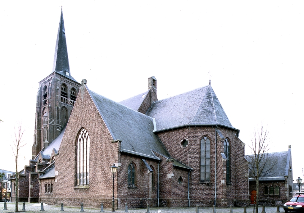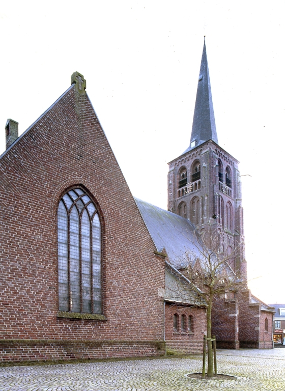 De oorspronkelijke kerk uit 1610 werd in 1811 aan de katholieken gerestitueerd. Op initiatief van pastoor Andreas de Louw werd de kerk in 1880 door Weber gerestaureerd en bleef slechts de zestiende-eeuwse toren bewaard. Webers kerk werd op zijn beurt grotendeels vervangen door een ontwerp van architect H.W. Valk uit 1929-1931. De kerk werd wederom gesloopt, maar ook ditmaal bleef de toren behouden. Kenmerkend voor deze kerk is de lage goothoogte van het middenschip. Voor de lichttoetreding werden daarom de travee?n aan weerszijden op drie plaatsen verhoogd met topgevels tussen de steunberen. In deze topgevels werden grote spitsboogvensters met gemetseld maaswerk geplaatst. Het schip wordt in het interieur afgesloten met een triomfboog, die zich aan de buitenzijde manifesteert als een topgevel met kleine klokkenstoel, waartegen het lagere presbyterium met driezijdige abside is aangebouwd. De aanzet van het presbyterium is ook de plaats waar de dwarsbeuken ontstaan. Haaks op de dwarsbeuk aan de noordzijde is een sacristie gebouwd. Aan deze zijde is het kerkterrein ommuurd. Aan de zuidzijde is de vierde travee uitgebouwd tot aan de voorzijde van de dwarsbeuk. Het doorlopende dak van het schip heeft hier een goothoogte van circa 3.50 meter.