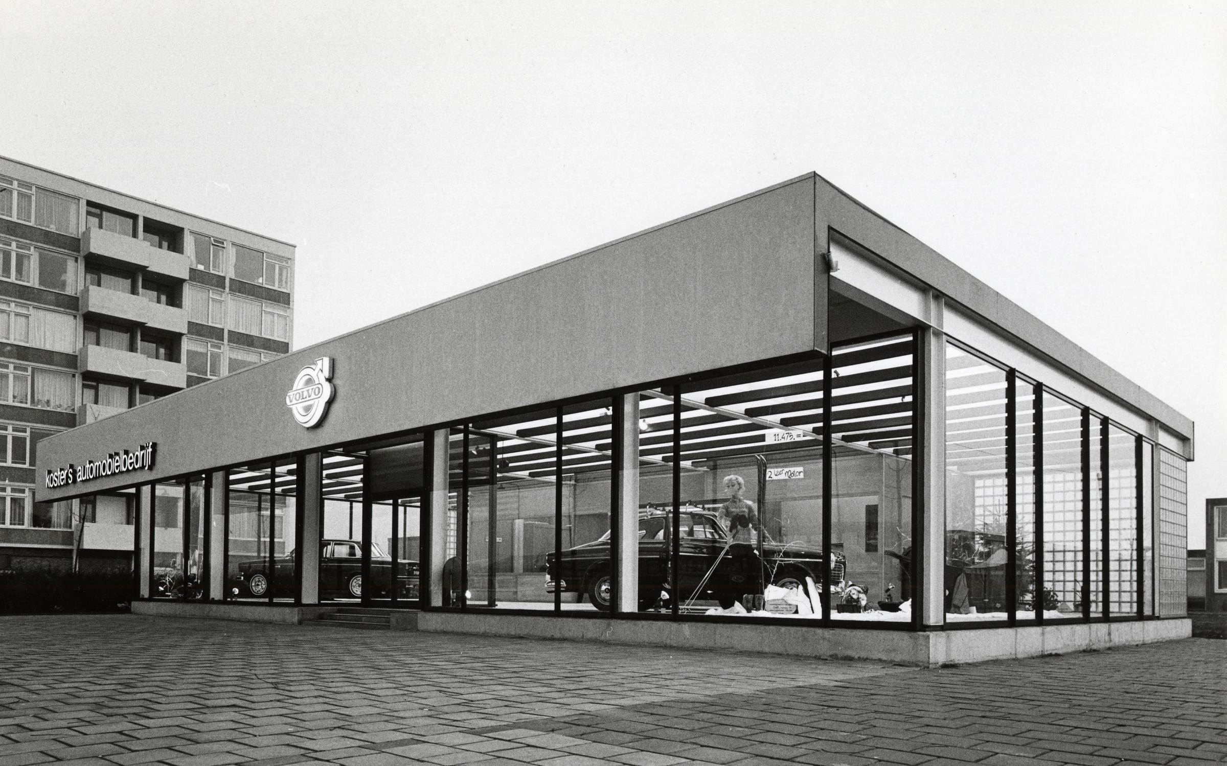 Autoshowroom ontworpen als een modernistische glazen doos. Een experiment in prefabbouwen, garage-architectuur en verlichting. Met het gebruik van staal en glas en de paviljoen-achtige opzet is het gebouwtje een vrije interpretatie door Salomonson van de architectuur van Mies van der Rohe (Crown Hall in Chicago en de Neue Nationalgalerie in Berlijn) en Philip Johnson (Glass House in Connecticut). Salomonson werd in 1966 gevraagd door de heer Koster, directeur van Koster?s Automobielberdrijf, een autoshowroom in Buitenveldert te ontwerpen met een kelder voor een voorraad auto?s. Een eerste schets werd gemaakt in april 1966. Het ontwerp werd goedgekeurd in juli. De bouw begon in augustus 1967 en was voltooid in april 1968. Aantekening van Salomonson in 1968: ?5 april geopend, was tamelijk gereed. Koster zeer ontroerd. Het gebouwtje is van buiten bijzonder geslaagd, een mooie huid Bij het interieur zijn enkele dingen niet helemaal goed in de atmosfeer. Voor het eerst is bij ons een werk aan de buitenzijde beter dan van binnen.? Salomonson stelde zich ten doel een heldere hoofdvorm tot stand te brengen die vanaf de weg goed herkenbaar moest zijn. Een liggende glazen doos met een opvallende luifel is enigszins teruggeplaatst van de weg. De publieke ruimte is hierdoor nadrukkelijk betrokken bij het gebouw. Om een onderscheid te maken met de auto?s op straat, werd het niveau van de showroom iets hoger gemaakt. De verhoogde vloer van de showroom is belegd met witte vierkante tegels. De constructie van het gebouwtje bestaat uit een betonnen kelderbak (waarin opslag van de autovoorraad) waarop een lichte stalen opbouw is geplaatst (waarin de showroom en enkele kantoortjes). Twaalf stalen H-balken en acht stalen liggers dragen het platte dak, dat aan de voorzijde een grote luifel vormt. Het dak is opgebouwd uit pre-fab betonelementen (?Kwaaitaal?). Typerend voor deze (vloer) elementen is de gewelfde onderkant. Deze vorm werd gebruikt als reflector voor de in houten bakken gevatte TL-verlichting. De staande wanden van het gebouwtje bestaan uit glas en aan de achterzijde uit glazen bouwstenen en baksteen. De hoofdingang is symmetrisch in het midden van de glazen voorgevel geplaatst. Aan de achterzijde is een afrit naar de kelder. In de open showroom is aan de achterzijde een langwerpige ?doos in een doos? geplaatst. De houten wanden omvatten een ontvangstruimte, balie en een kantoortje. Toelichting van Salomonson bij het ontwerp omstreeks 1986: ?Een eenvoudige showroom met kantoorruimte en een kelder voor een kleine voorraad auto?s. Het leek mij goed om de auto?s in de showroom 40 cm boven het maaiveld te zetten waarmee deze zich onderscheiden van de andere auto?s op straat. De luifel maakte ik in de hoop dat de voorbijflitsende automobilist zich deze hoofdvorm zou herinneren en bovendien ontstond daardoor een beschutte binnenruimte. De constructie is simpel, een betonnen doos voor de kelder en een lichte stalen opbouw. Het dak wordt gevormd door schoon verwerkte Kwaaitaal elementen, waarbij de gewelfde vorm dienst doet als reflector voor de daaronder in houten profielen aangebrachte TL-verlichting. Het gebouw is door een nieuwe eigenaar op wrede wijze verbouwd, de glazen bouwsteen gesloopt en de luifel overdekt met reclame.?