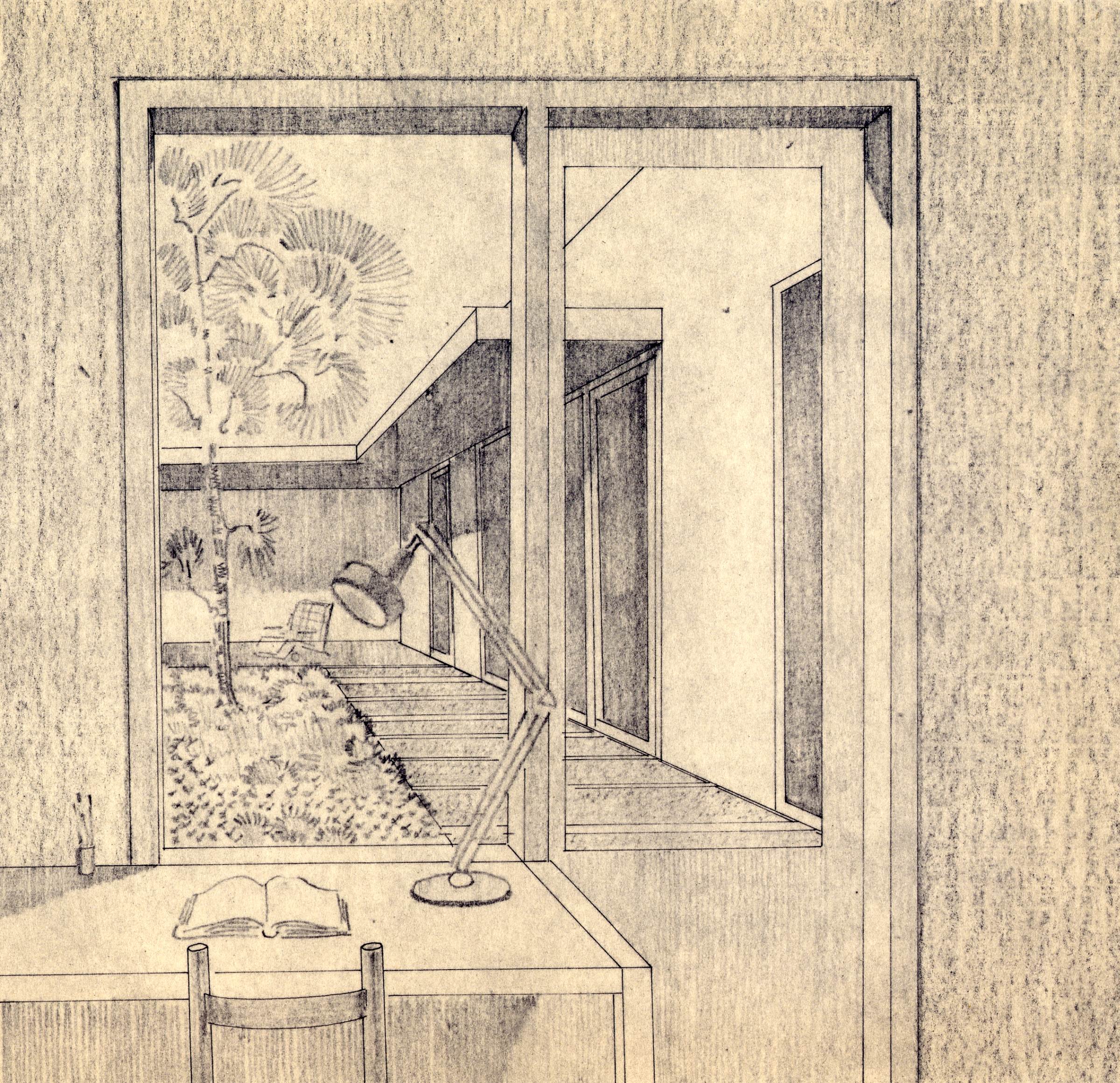 Studie voor een woningbouwplan met vijftien patiowoningen en een tweede plan met dertig woningen. Toelichting van Salomonson omstreeks 1986: ?De ?maatschappij tot verkrijging van eigen woningen? kreeg in Osdorp een aardig gesitueerd terrein toegewezen en wilde daar een aantal comfortabele patiowoningen bouwen. Blijkbaar heb ik mij door dat idee zo laten meeslepen dat ik een veel te luxueus plan maakte met 15 begane grondwoningen, elk om een patio gebouwd. Het bestuur achtte dit niet haalbaar en ik maakte een 2e plan met 30 woningen. Deze hebben een verdieping en een ommuurde patio met overdekt zitje en bergruimte. Voor dit type was veel belangstelling maar toen bleek dat de gemeente het terrein toch niet beschikbaar kon stellen!?