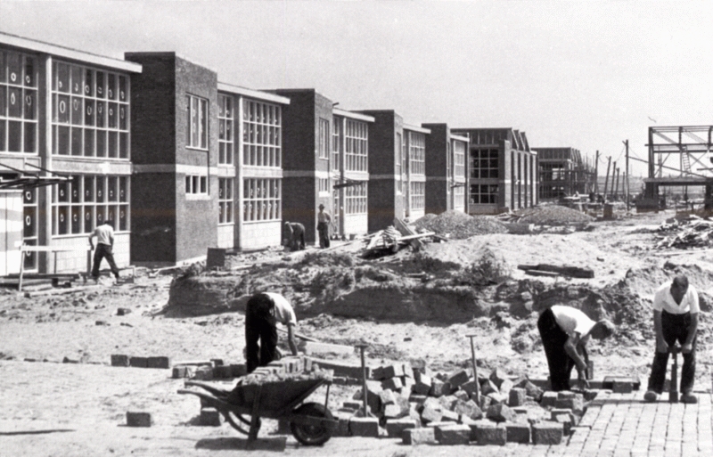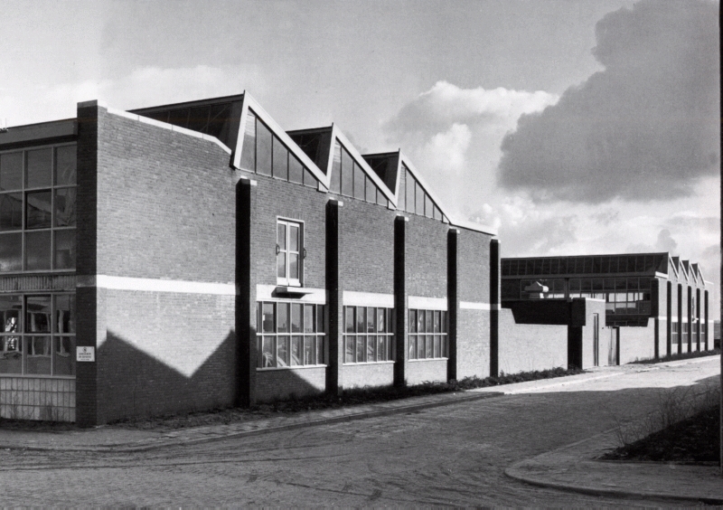 Voor dit industrieterrein ontwierpen Van Tijen en Maaskant zestig hallen. Elke hal had een schaaldak en aan de voorzijde een kantoortje op een bordes. Door de Tweede Wereldoorlog kon het plan niet doorgaan. Na de oorlog en op een iets andere locatie kon dat wel. Het hallencomplex bestond uit 25 eenheden. Elke hal kreeg drie of vier sheddaken. De betonconstructie werd ingevuld met baksteen en vensters.